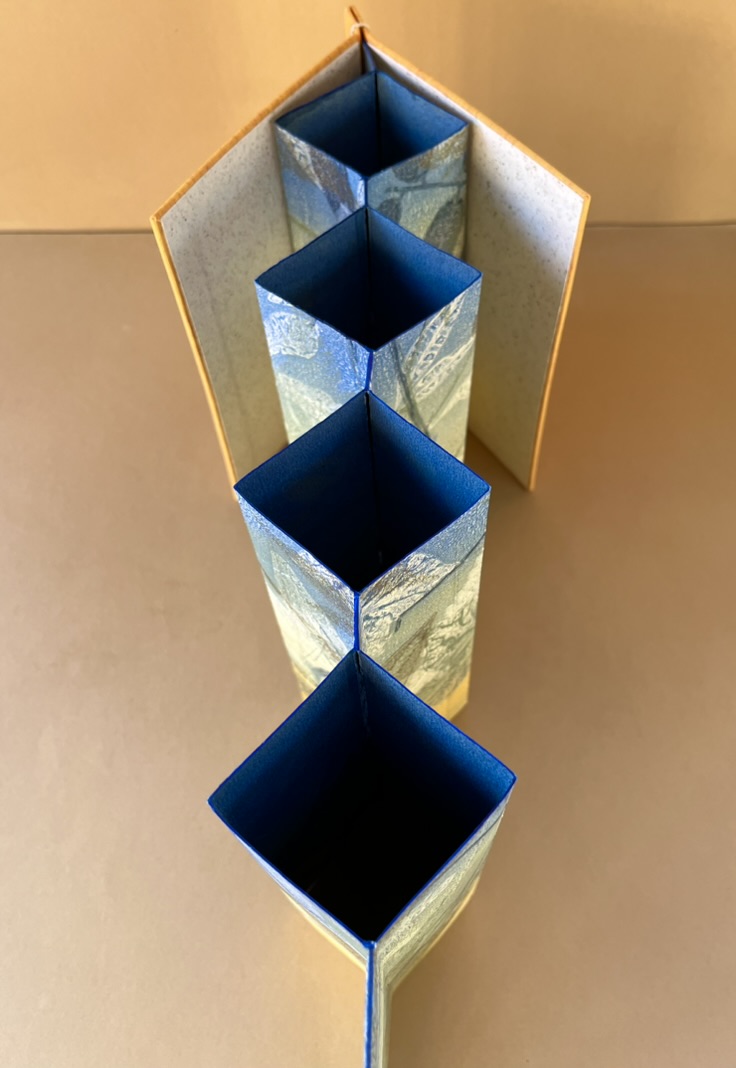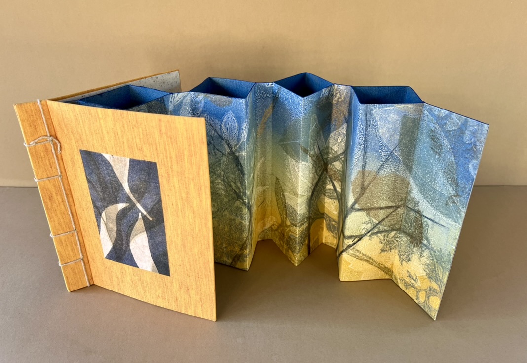 Coastal foliage – Treefold handprinted artists book, 14.5 x 17 cms, 45 cms extended